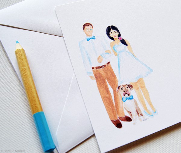 Mospens Studio is all about expressing your personal style. And these custom illustrated portrait note cards do not disappoint! Perfect for a 1st year wedding anniversary gift. Check out how adorable they are!!