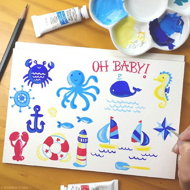 OH BABY! This past holiday weekend was full of relaxation, family, food, and painting art for my NEW BABY STATIONERY line.