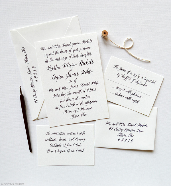 Elegant and chic! Our calligraphy-inspired letterpress invitations are just perfect for a formal wedding.