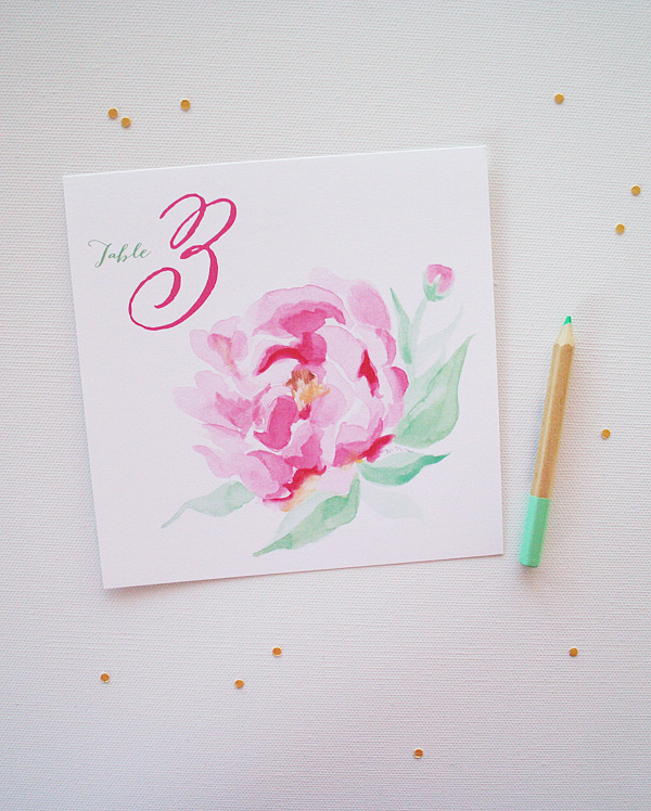 Our pink watercolor peony flower table number cards will help your guests find their table in style. Perfect for a spring, summer, or garden chic wedding!